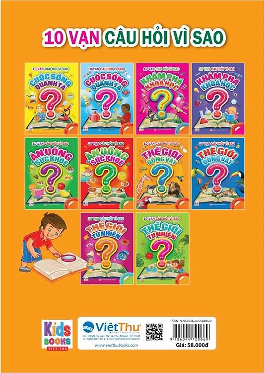 Trẻ em luôn tò mò và muốn tìm hiểu thêm về thế giới và những điều kỳ lạ xung quanh. Bé sẽ đặt rất nhiều những câu hỏi như "Vì sao?" với mong muốn được giải đáp. Bộ sách 10 vạn câu hỏi vì sao sẽ có câu trả lời cho các câu hỏi của bé xoay quanh chủ đề quen thuộc như Cuộc sống quanh ta, Ăn uống & Sức khỏe, Khám phá khoa học, Thế giới động vật, Thế giới tự nhiên. Bộ sách này sẽ là món quà tuyệt vời và ý nghĩa dành cho các bé.