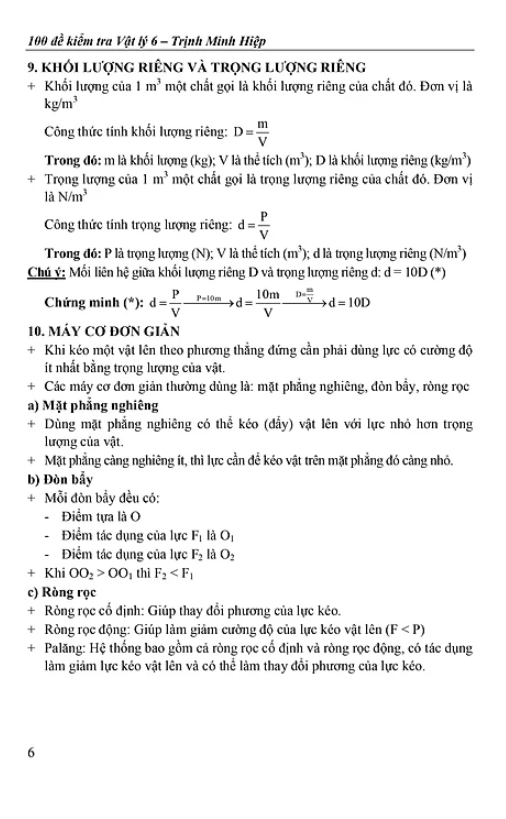 100 Đề Kiểm Tra Vật Lý 6 Cuốn sách gồm 2 phần chính: Phần I: Kiến thức cần nhớ Chương I: Cơ học Chương II: Nhiệt học Phần II: Các bộ đề kiểm tra