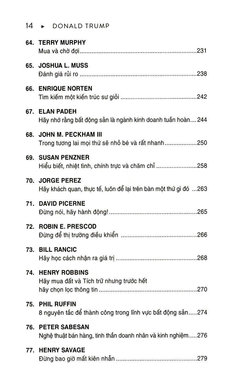 Trong cuốn sách này, bạn sẽ thấy sự sáng suốt khác thường có được là nhờ vào những kinh nghiệm và bài học mà những nhân vật có thế lực trong kinh doanh bất động sản trên khắp nước Mỹ phải trải bao khó khăn mới rút ra được. Có rất nhiều điều mà lẽ ra tất cả chúng ta đã có thể làm tốt hơn: từ việc bỏ lỡ cơ hội, dự đoán sai về thị trường đến việc thương lượng quá cao hoặc quá thấp. Những nhà kinh doanh này - cả nam lẫn nữ - sẽ kể cho bạn biết họ đã học được gì.