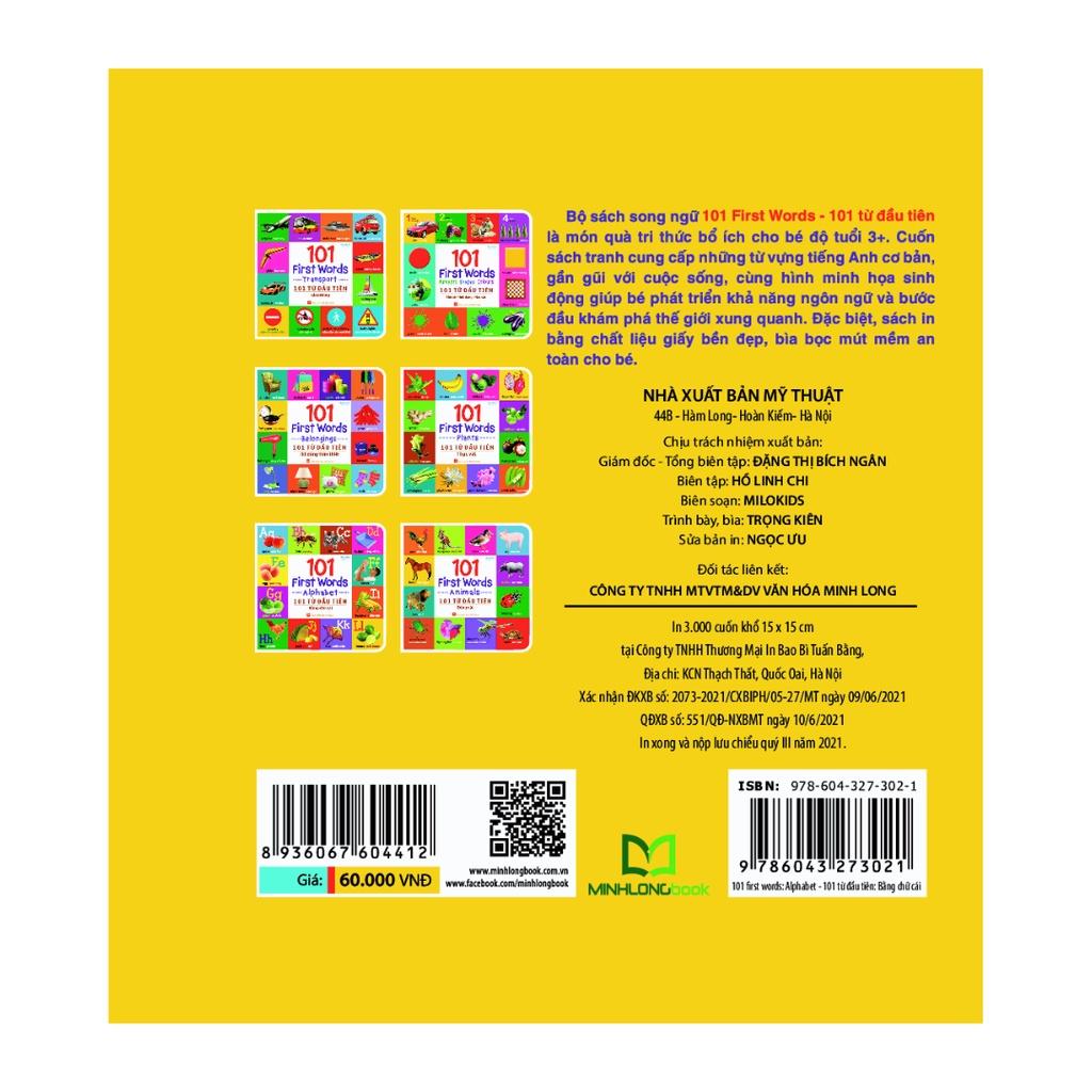 101 First Words/ 101 từ đầu tiên là những cuốn sách Anh – Việt vô cùng bổ ích dành cho các bé từ 2 đến 7 tuổi bắt đầu tập nói tiếng Anh. Bé sẽ được phát triển vốn từ tiếng Anh thông qua các chủ đề gần gũi như Giao thông, Bảng chữ cái, Các vật dụng trong nhà hay các chủ đề mang tính khám phá như Động vật… Không những thế, việc chọn lựa phương pháp chuyển tải thú vị của cuốn sách đã mở ra cho các em một thế giới hình ảnh sinh động và đầy màu sắc, giúp bé tiếp thu kiến thức và ghi nhớ dễ dàng hơn.