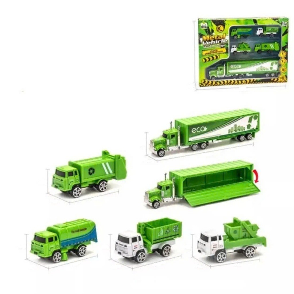 Đồ chơi xe tải kỹ thuật mô hình 901345ZE gồm 6 chiếc xe đa dạng trong 1 hộp, mô phỏng các loại xe trong công trường như xe ben, xe chở hàng, xe kỹ thuật.