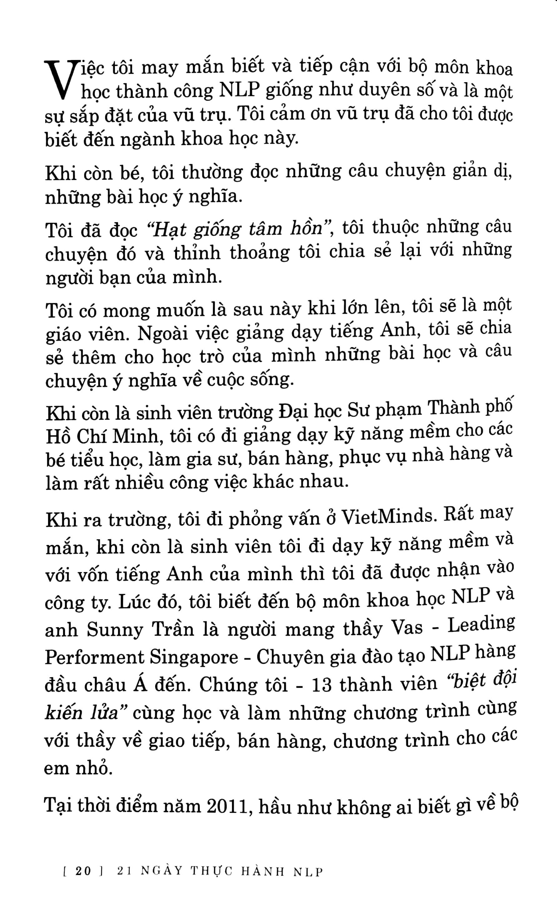 Là cuốn sách được viết trên sự trải nghiệm của tác giả Đậu Thị Nhung - người trực tiếp đã giảng dạy chương trình NPL trong nhiều năm, đồng thời cũng là thông dịch viên của Tiến sĩ Biswaroop - một kỷ lục gia về tư duy não bộ và sức khỏe trên thế giới.