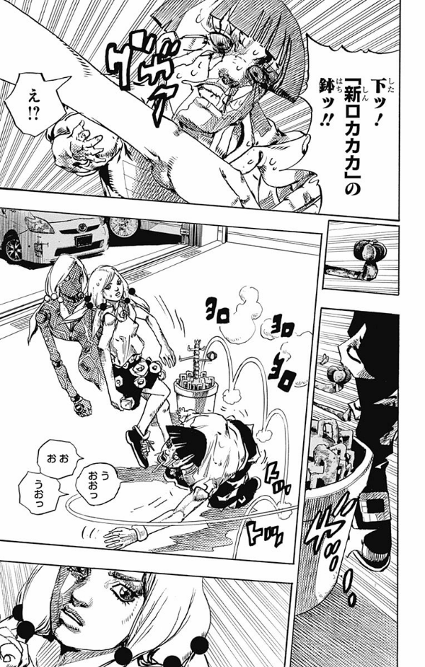 ジョジョリオン 26 - JOJOLION 26 透龍の忠告を無視し虹村京へ電話をかける康穂。しかし、10000m上空では一機の航空機から部品が康穂めがけて落下しようとしていた! 一方、定助は瀕死状態の豆銑が発した言葉「見えないヤツ」の意味に近づき…!?