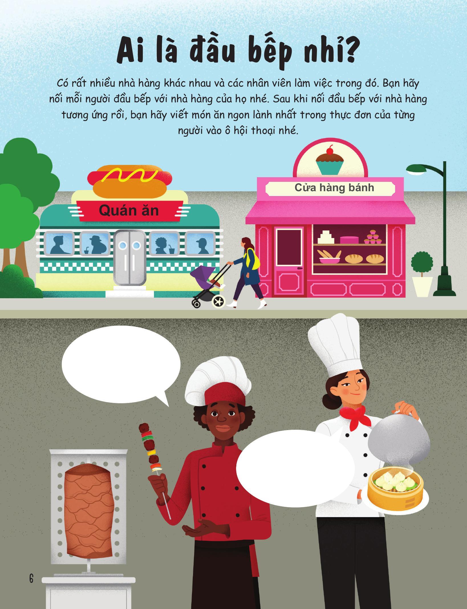 - Ở nhà hàng Đa dạng trò chơi từ tô màu, viết, vẽ giải đố, nhanh tay nhanh mắt, tìm món đồ thất lạc, sáng tạo áp phích quảng cáo du lịch, vui chơi,... Mở rộng hiểu biết qua từng trò chơi trên giấy: tuyến đường sắt dài nhất, những điều cần lưu ý khi đi máy bay, khám phá các loại ô tô, tự lên thực đơn cho bữa ăn của m.ình,...