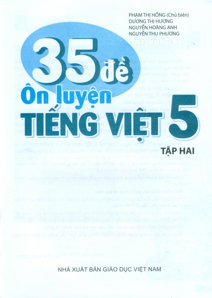Nhằm giúp các em học sinh có tài liệu ôn luyện những kiến thức – kĩ năng đã được học trong sách giáo khoa Tiếng Việt 5 (Kết nối tri thức với cuộc sống) và làm quen với hình thức kiểm tra – đánh giá kết quả học tập sau mỗi tuần học, chúng tôi biên soạn bộ sách 35 đề ôn luyện Tiếng Việt 5.
