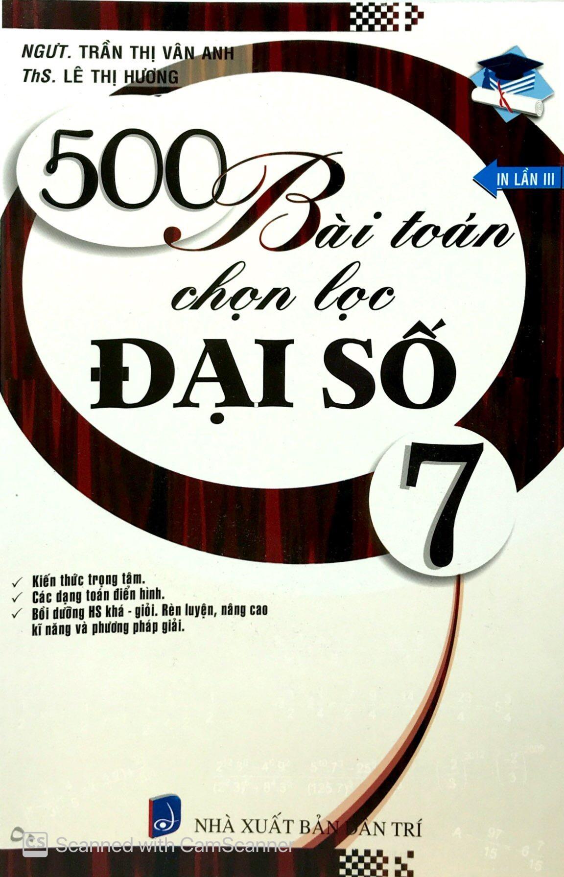 500 Bài Toán Chọn Lọc Đại Số Lớp 7 Cuốn sách 500 Bài Toán Chọn Lọc Đại Số Lớp 7 sẽ giúp các em hoàn thiện các kiến thức trọng tâm và rèn luyện cách giải với các dạng toán điển hình. Đồng thời, sách còn rất phù hợp để giúp bồi dưỡng học sinh khá - giỏi, cũng như rèn luyện, nâng cao kĩ năng và phương pháp giải toán. Sách được chia thành 8 chuyên đề cơ bản sau, bao gồm: