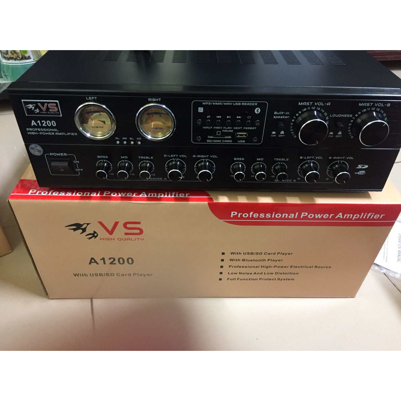 - Amply VS A1200 thiết kế theo tiêu chuẩn chuyên nghiệp giúp cho chủ đầu tư tiết kiệm giá thành và điện năng, nhưng lại bền bỉ và phù hợp cho các nhà yến diện tích lớn.