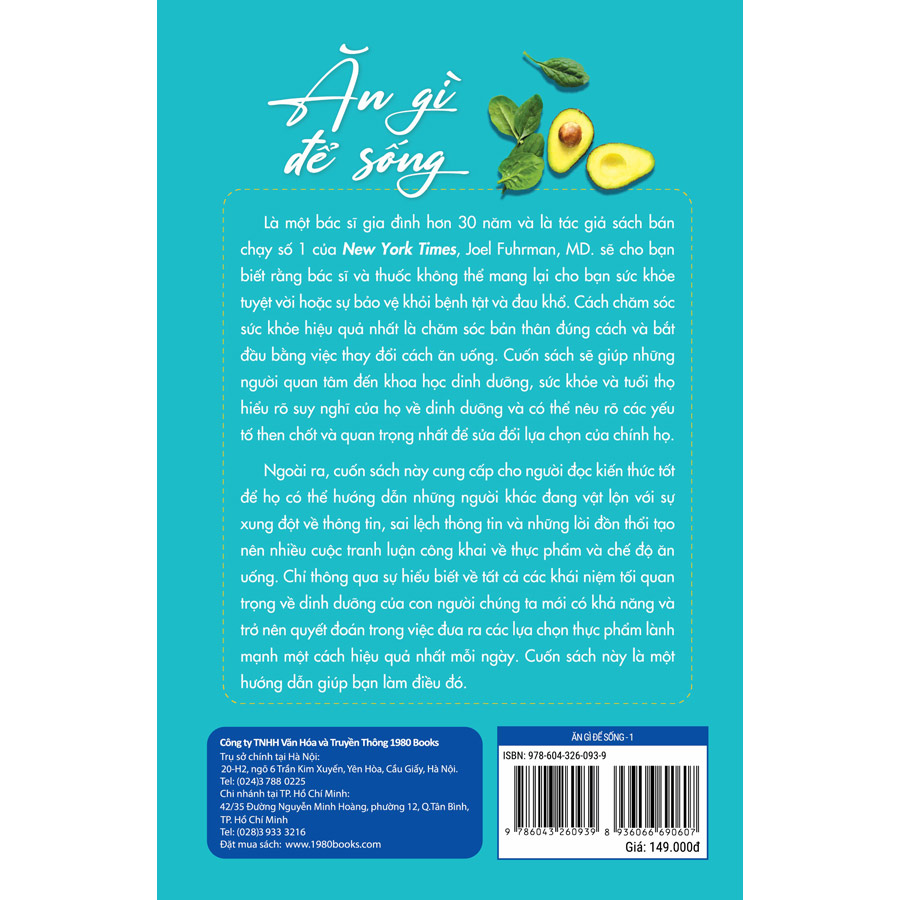 Ăn gì để sống cung cấp cho người đọc kiến thức tốt để họ có thể hướng dẫn những người khác đang vật lộn với sự xung đột về thông tin, sai lệch thông tin và những lời đồn thổi tạo nên nhiều cuộc tranh luận công khai về thực phẩm và chế độ ăn uống. Chỉ thông qua sự hiểu biết về tất cả các khái niệm tối quan trọng về dinh dưỡng của con người, chúng ta mới có khả năng và trở nên quyết đoán trong việc đưa ra các lựa chọn thực phẩm lành mạnh một cách hiệu quả nhất mỗi ngày.