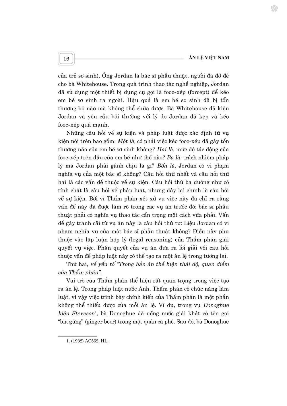 Cuốn sách là tài liệu quý trong việc tìm hiểu, nghiên cứu và viện dẫn án lệ cho các Thẩm phán, Hội thẩm và các chức danh tư pháp của Tòa án, cũng như bạn đọc quan tâm đến vấn đề này.