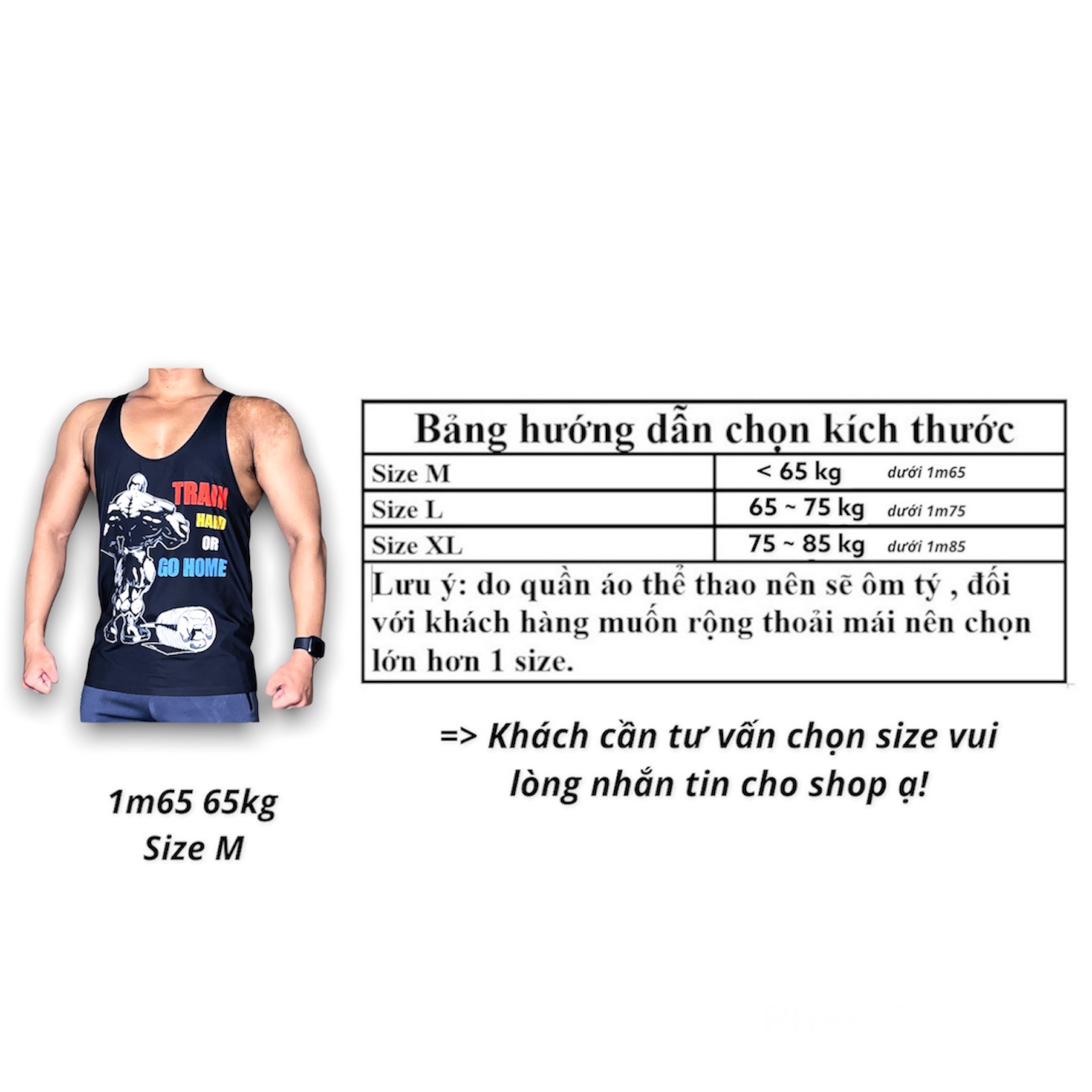- Size: M: 50 - 65kg L: 65 - 75 kg XL: 75 - 85kg => Khách cần tư vấn size vui lòng inbox. Lưu ý khi chọn áo 3 lỗ nam tập gym DO GYM SHOP form body đẹp, thun lạnh 4 chiều thoáng mát: