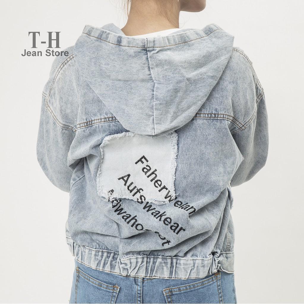 ✨Áo khoác jean nữ có mũ đắp bạ thêu, áo khoác bò nữ cá tính, năng động