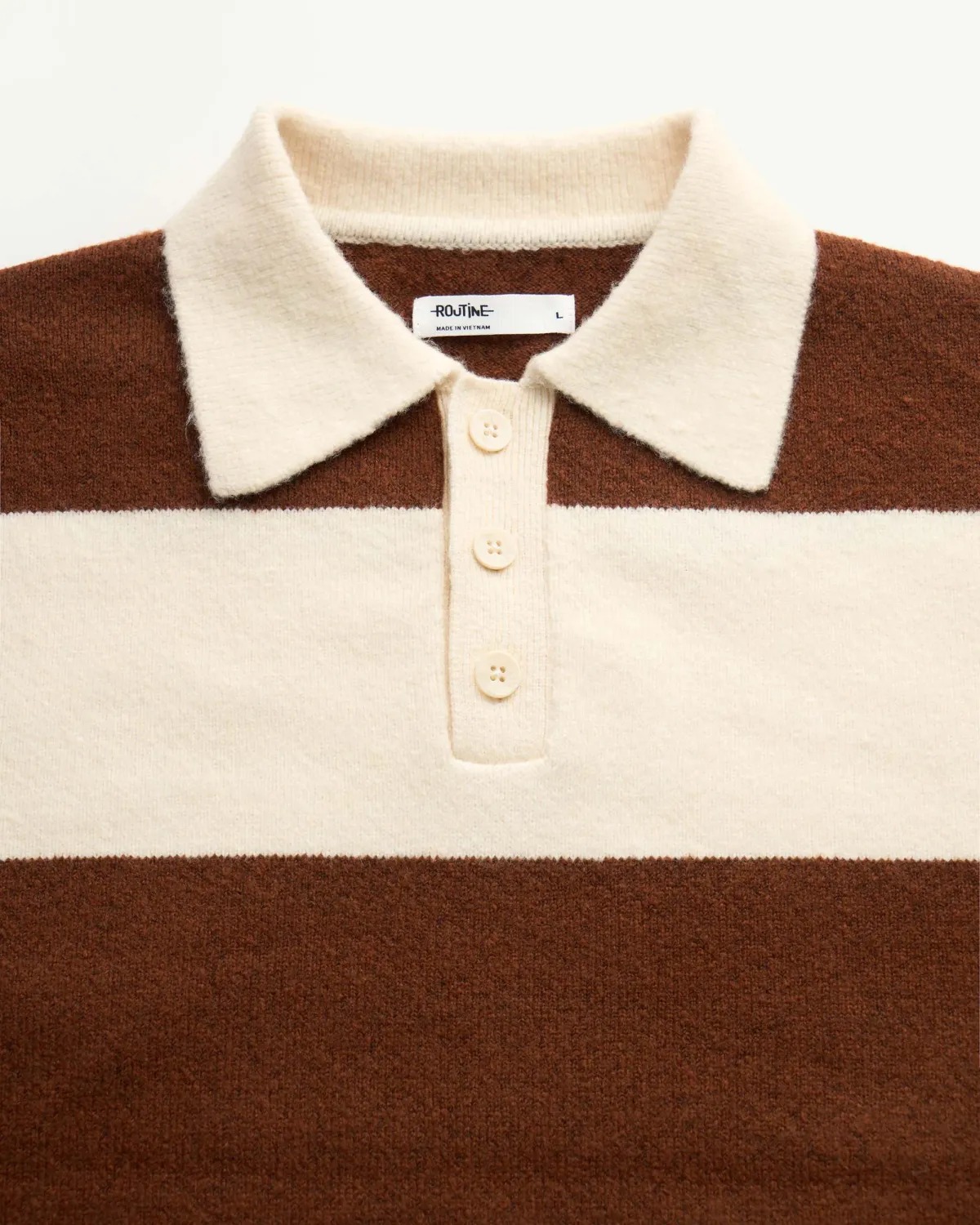 Áo polo dệt kim tay ngắn nam kẻ sọc. Loose - ROUTINE 10F25KNI008 Đặc điểm nổi bật Form : Loose Fabric : Acrylic Collection: Fall Thông tin chi tiết: Áo polo dệt kim tay ngắn