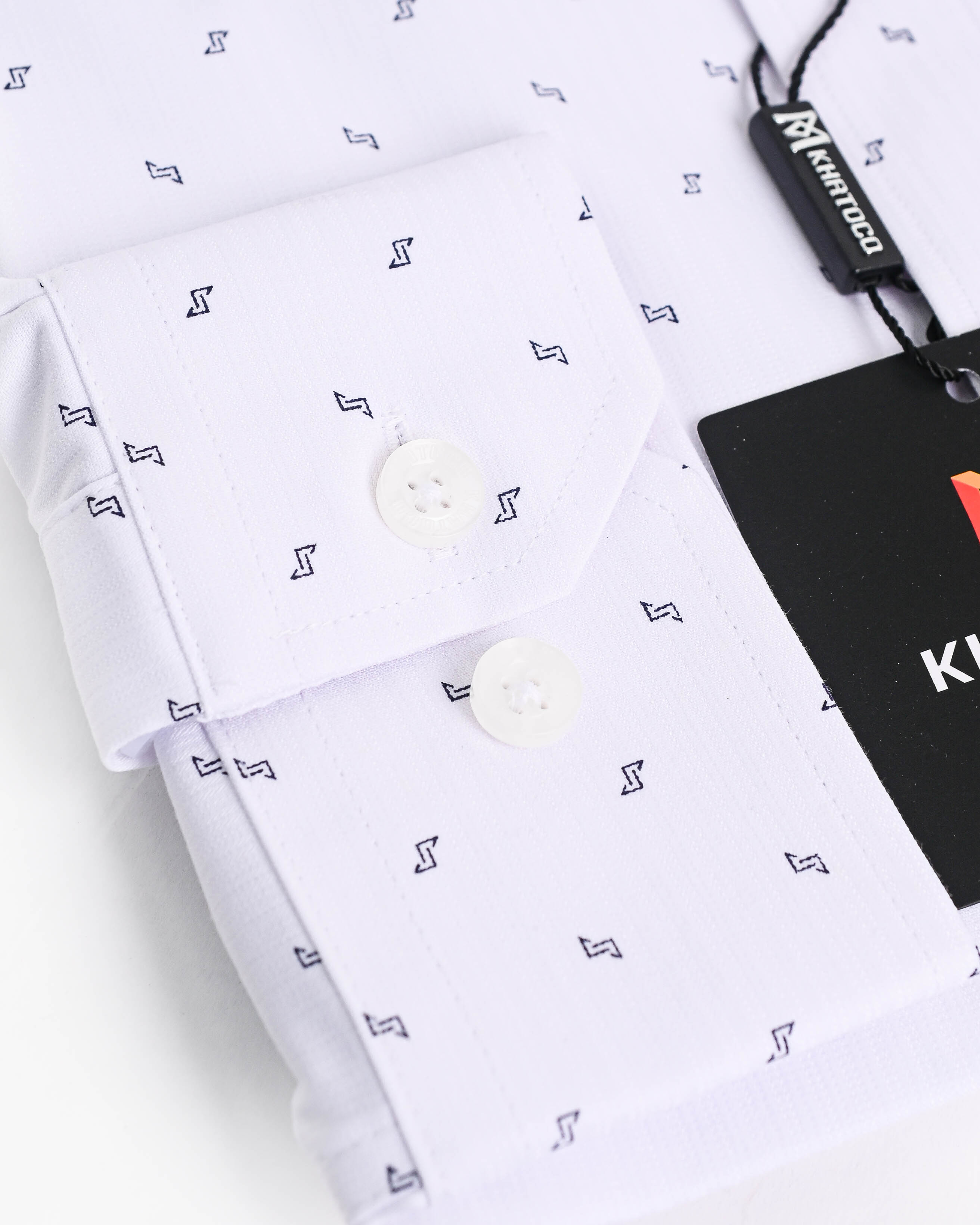 Áo sơ mi nam trung niên, Áo sơ mi nam công sở Anton, Áo sơ mi trắng dài tay trắng họa tiết chấm bi Y302 Vải cotton thoáng mát, thấm hút tốt, mềm mịn không