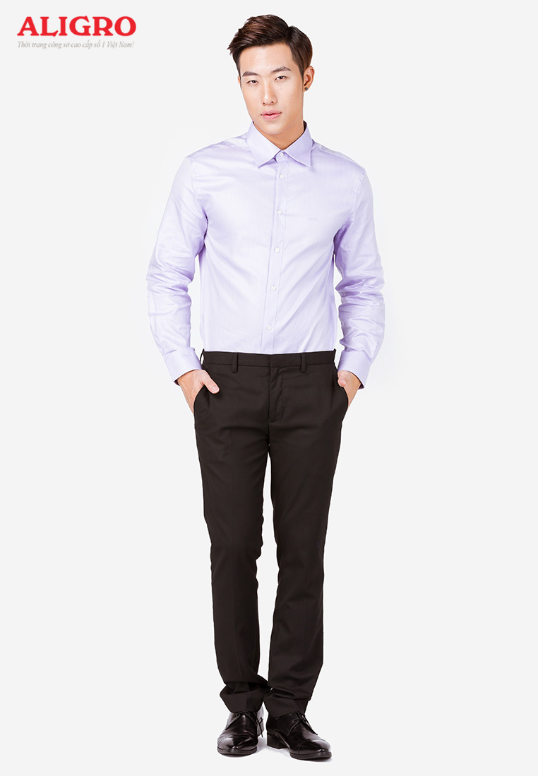 ✨Áo sơ mi nam dài tay ALIGRO 100% chất cotton màu tím nhạt cổ bẻ dáng ôm body, thanh lịch ALGS036