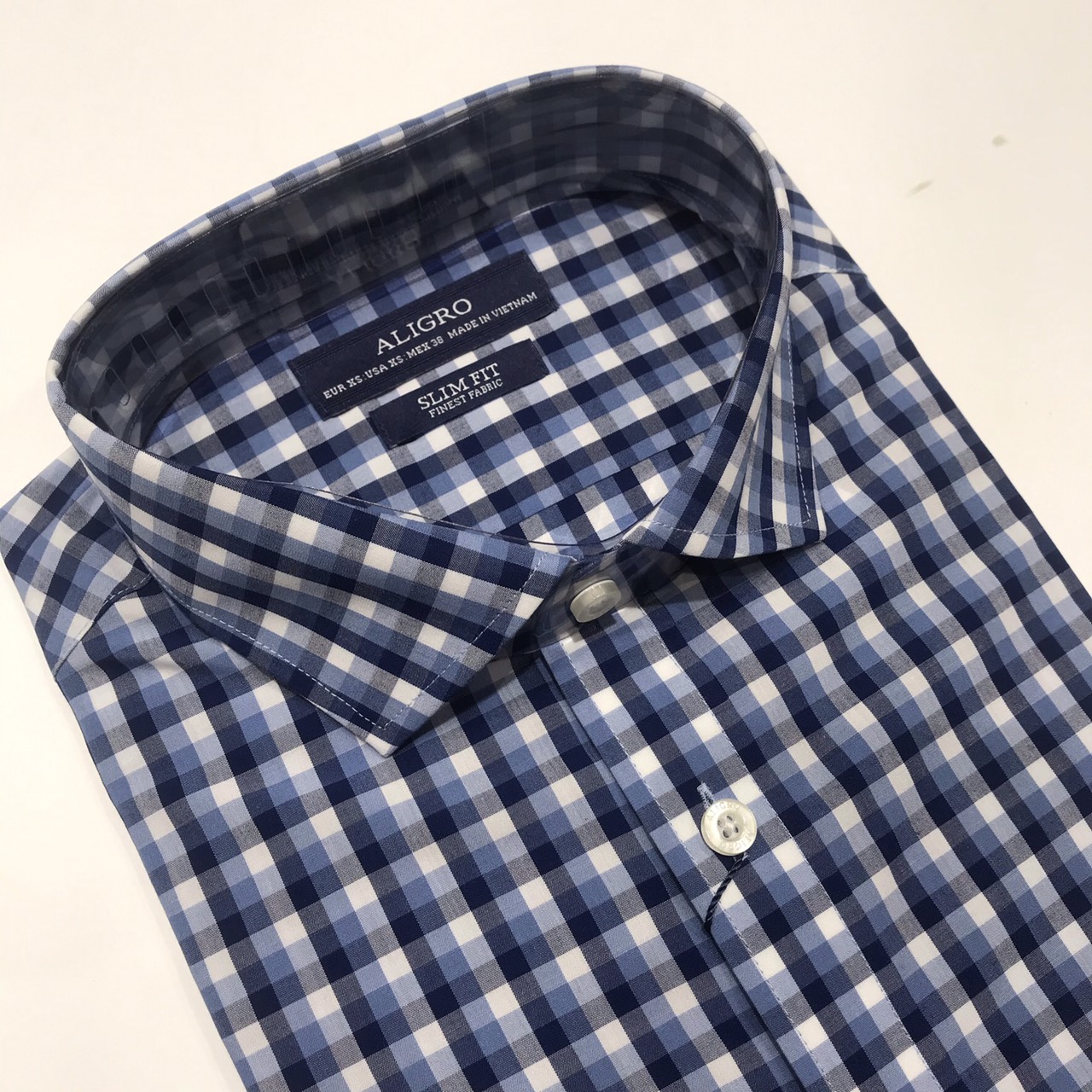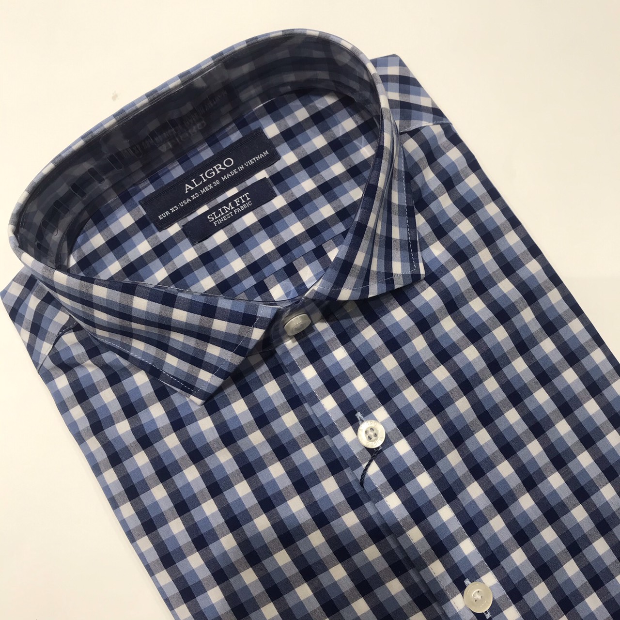 ÁO SƠ MI NAM DAI TAY KẺ CARO XANH TÍM ALIGRO ALGS186