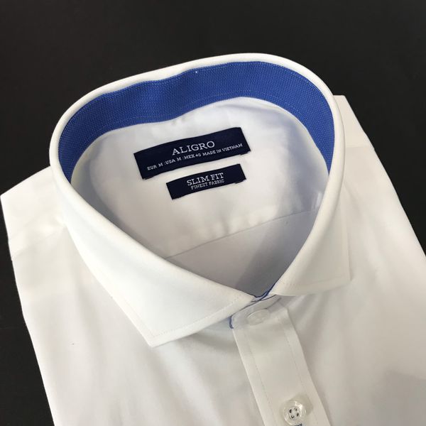 ✨Áo sơ mi nam dài tay ALIGRO cổ bẻ dáng ôm body 100% chất cotton trắng phối cổ ALGS194