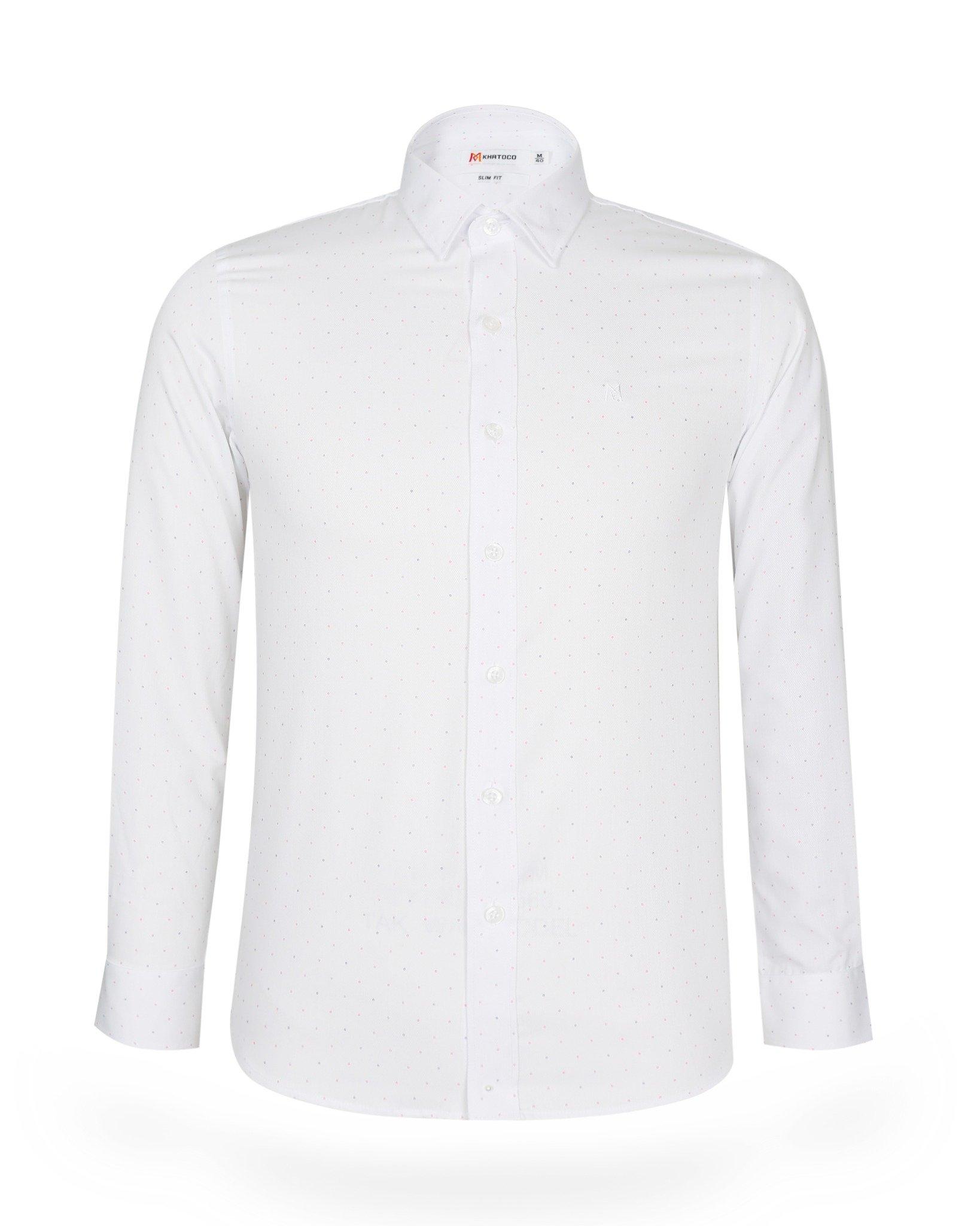 Áo sơ mi nam trung niên, Áo sơ mi nam công sở Anton, Áo sơ mi trắng dài tay trắng họa tiết chấm bi Y302 Vải cotton thoáng mát, thấm hút tốt, mềm mịn không