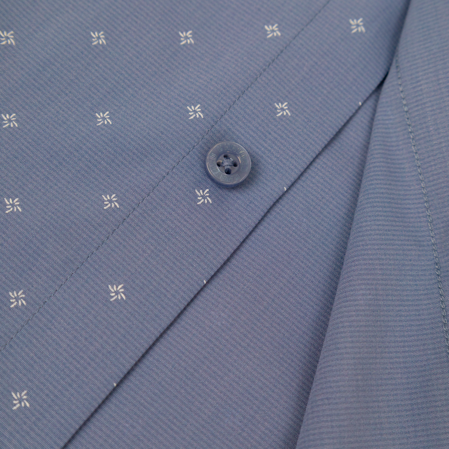 (V) MÔ TẢ: Form Taylor, tai dài Form áo tiêu chuẩn với form áo rộng vừa phải, không ôm sát cơ thể, bó nhẹ ở vùng eo và tay áo. Độ rộng vùng ngực và nách cũng sẽ fit hơn với cơ thể. Không quá rộng như form áo cổ điển. Màu vải nhã nhặn và trung tính dễ dàng phối trang phục tạo sự lịch lãm, nam tính Nút ton-sur-ton khắc logo đẹp mắt phối trọn vẹn màu áo. Logo thêu sắc nét trên túi áo. Chất liệu:50%POLYESTER- 24%COTTON-2%SPANDEX- 24%VISCOSE(BAMBOO) |Mềm mịn|Thấm hút |Kháng khuẩn|Độ thoáng khí cao|Chống tia UV|Chống nhăn|Chống co rút |Nhanh khô|Dễ vệ sinh làm sạch|Đứng phom áo Màu sắc : Màu Xanh họa tiết