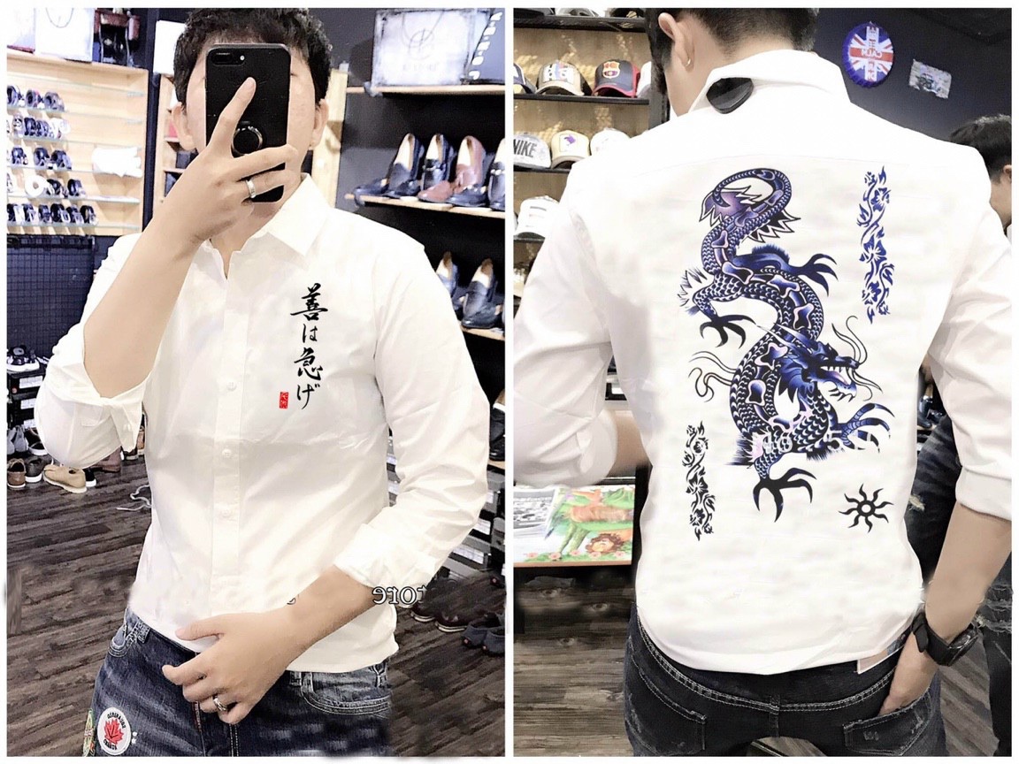 Thiết kế Áo sơ mi nam họa tiết rồng cao cấp phong cách đường may tỉ mỉ.