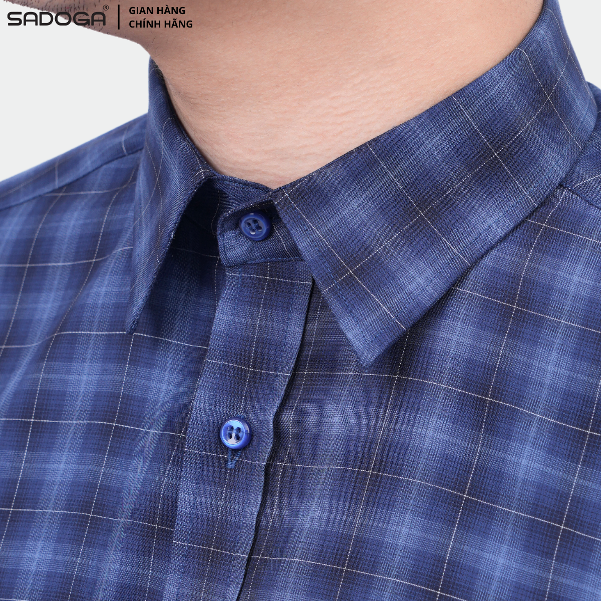 Áo sơ mi nam trung niên, Áo sơ mi nam công sở Anton, Áo sơ mi nam dài tay họa tiết caro xanh Vải cotton thoáng mát, thấm hút tốt, mềm mịn không xù Qúy