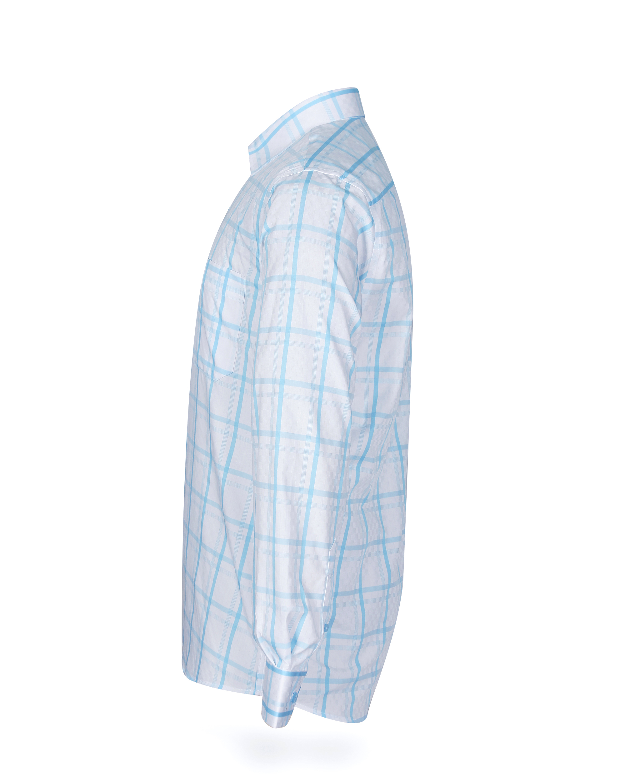 (V) MÔ TẢ: Form Taylor, tai dài Form áo tiêu chuẩn với form áo rộng vừa phải, không ôm sát cơ thể, bó nhẹ ở vùng eo và tay áo. Độ rộng vùng ngực và nách cũng sẽ fit hơn với cơ thể. Không quá rộng như form áo cổ điển. Màu vải nhã nhặn và trung tính dễ dàng phối trang phục tạo sự lịch lãm, nam tính Nút ton-sur-ton khắc logo đẹp mắt phối trọn vẹn màu áo. Logo thêu sắc nét trên túi áo. Chất liệu:50%POLYESTER- 24%COTTON-2%SPANDEX- 24%VISCOSE(BAMBOO) |Mềm mịn|Thấm hút |Kháng khuẩn|Độ thoáng khí cao|Chống tia UV|Chống nhăn|Chống co rút |Nhanh khô|Dễ vệ sinh làm sạch|Đứng phom áo Màu sắc : Màu Xanh họa tiết