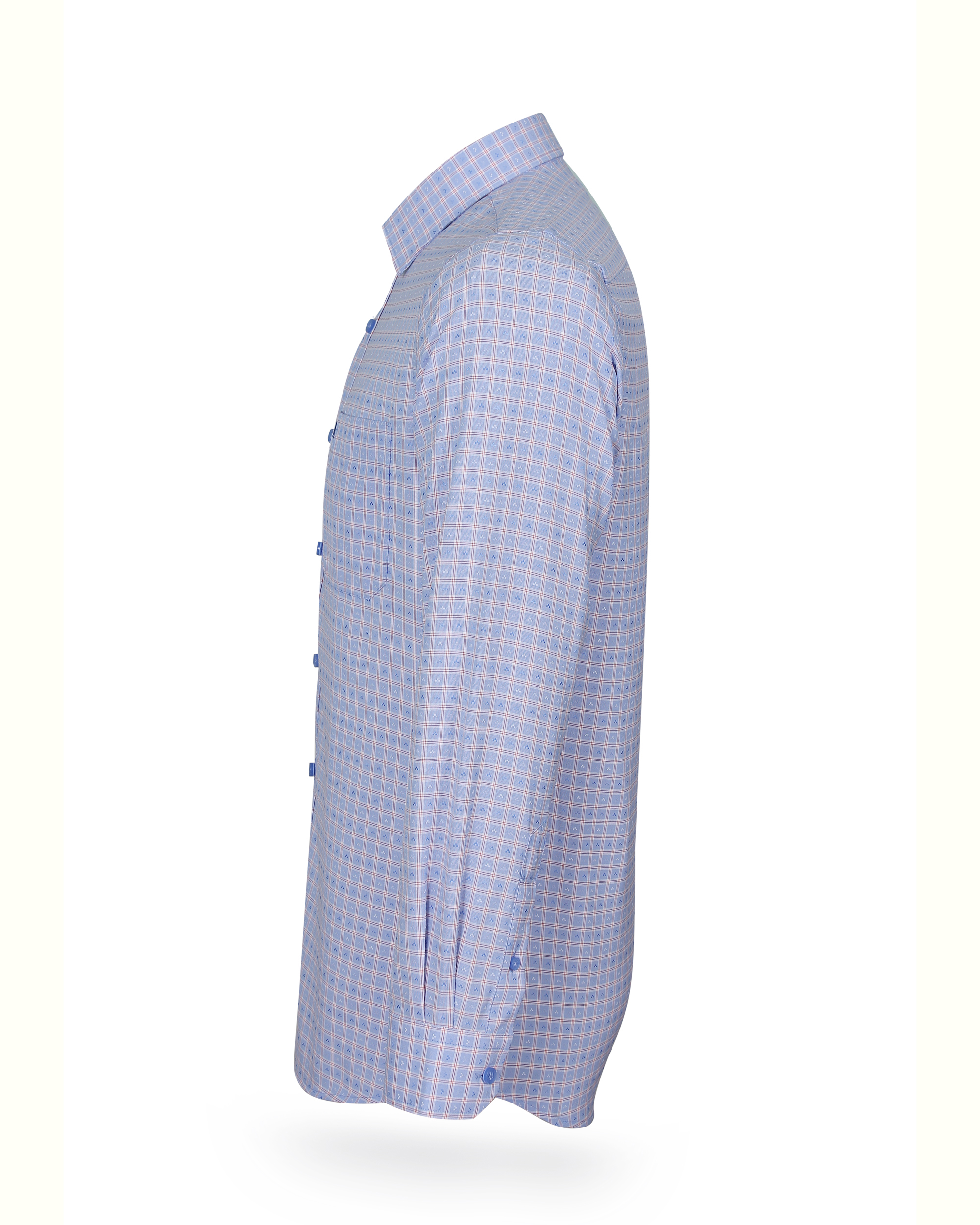 (V) MÔ TẢ: Form Taylor, tai dài Form áo tiêu chuẩn với form áo rộng vừa phải, không ôm sát cơ thể, bó nhẹ ở vùng eo và tay áo. Độ rộng vùng ngực và nách cũng sẽ fit hơn với cơ thể. Không quá rộng như form áo cổ điển. Màu vải nhã nhặn và trung tính dễ dàng phối trang phục tạo sự lịch lãm, nam tính Nút ton-sur-ton khắc logo đẹp mắt phối trọn vẹn màu áo. Logo thêu sắc nét trên túi áo. Chất liệu:50%POLYESTER- 24%COTTON-2%SPANDEX- 24%VISCOSE(BAMBOO) |Mềm mịn|Thấm hút |Kháng khuẩn|Độ thoáng khí cao|Chống tia UV|Chống nhăn|Chống co rút |Nhanh khô|Dễ vệ sinh làm sạch|Đứng phom áo Màu sắc : Màu Xanh họa tiết