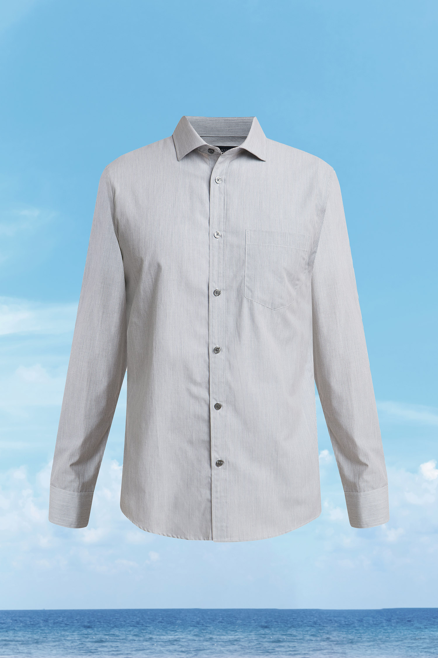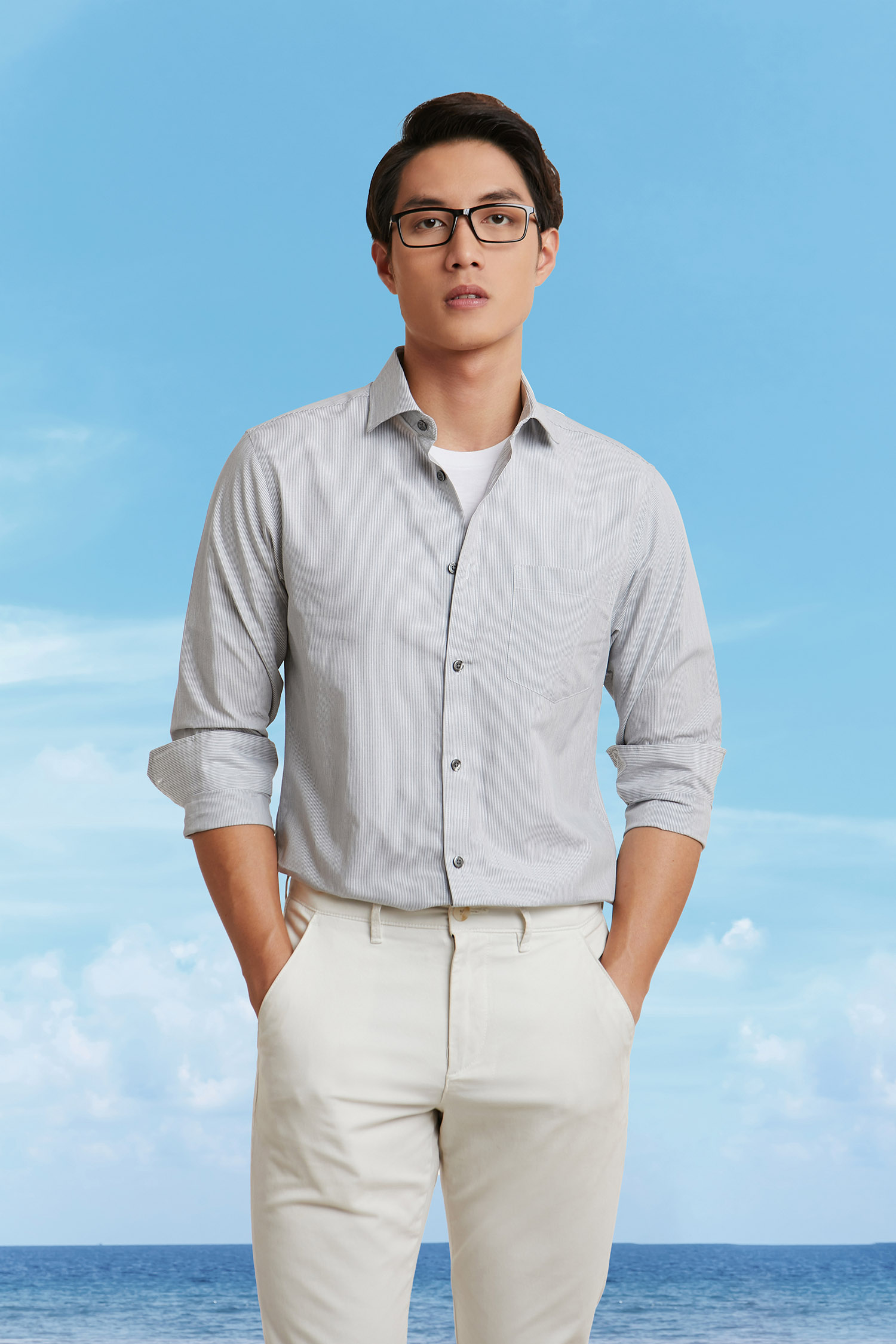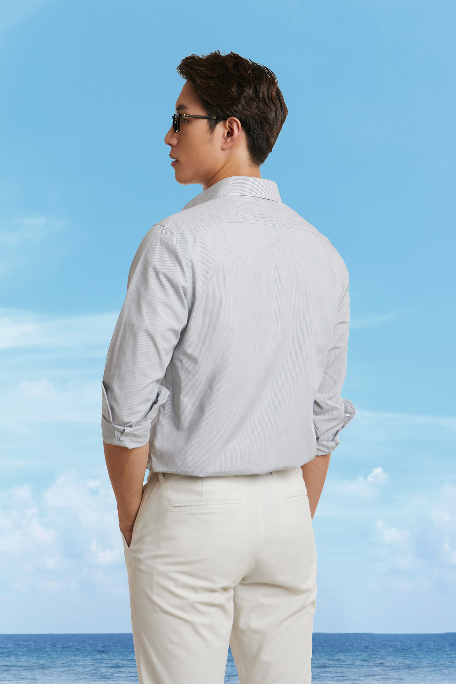 Form Taylor, tay dài Form áo tiêu chuẩn với form áo rộng vừa phải, không ôm sát cơ thể, bó nhẹ ở vùng eo và tay áo. Độ rộng vùng ngực và nách cũng sẽ fit hơn với cơ thể. Không quá rộng như form áo cổ điển. Màu vải nhã nhặn và trung tính dễ dàng phối trang phục tạo sự lịch lãm, nam tính Nút ton-sur-ton khắc logo đẹp mắt phối trọn vẹn màu áo. Logo thêu sắc nét trên túi áo. Chất liệu: 49% bamboo- 49% Microfiber-2% Spandex Mềm mịn |Thấm hút |Kháng khuẩn |Chống tia UV |Độ bền cao |Co giãn |Chống nhăn Màu sắc: trắng sọc
