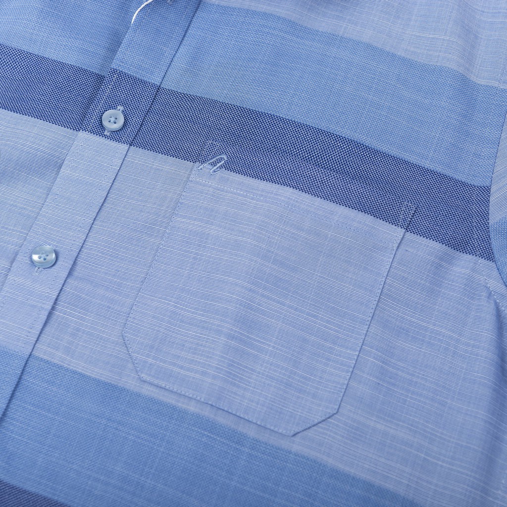 Áo Sơ Mi Nam Công Sở Trung Niên Thương Hiệu Anton Dài Tay Vải Sợi Tre Xanh Dương Kẻ Caro Chìm AT203