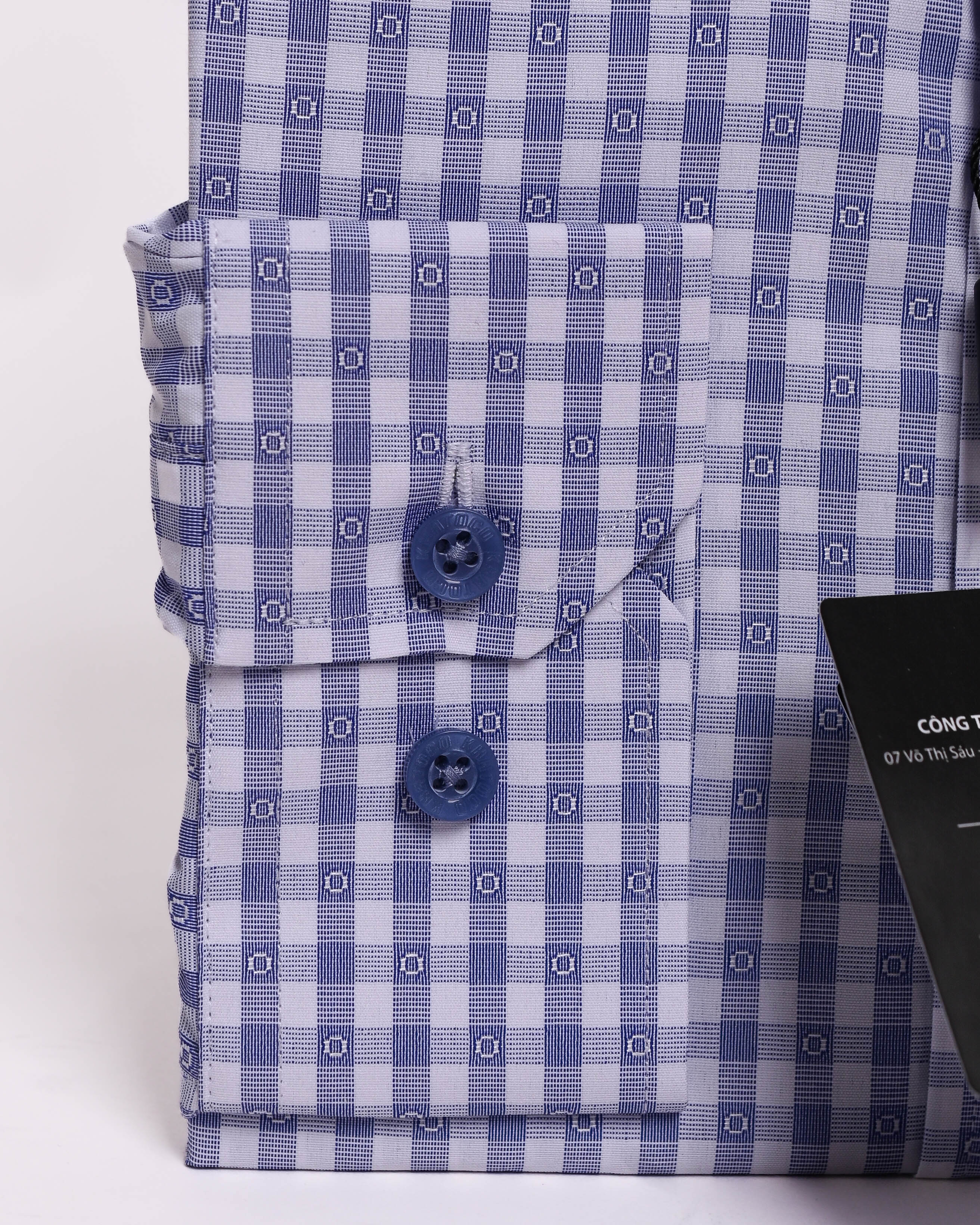(V) MÔ TẢ: Form Taylor, tai dài Form áo tiêu chuẩn với form áo rộng vừa phải, không ôm sát cơ thể, bó nhẹ ở vùng eo và tay áo. Độ rộng vùng ngực và nách cũng sẽ fit hơn với cơ thể. Không quá rộng như form áo cổ điển. Màu vải nhã nhặn và trung tính dễ dàng phối trang phục tạo sự lịch lãm, nam tính Nút ton-sur-ton khắc logo đẹp mắt phối trọn vẹn màu áo. Logo thêu sắc nét trên túi áo. Chất liệu:50%POLYESTER- 24%COTTON-2%SPANDEX- 24%VISCOSE(BAMBOO) |Mềm mịn|Thấm hút |Kháng khuẩn|Độ thoáng khí cao|Chống tia UV|Chống nhăn|Chống co rút |Nhanh khô|Dễ vệ sinh làm sạch|Đứng phom áo Màu sắc : Màu Xanh họa tiết