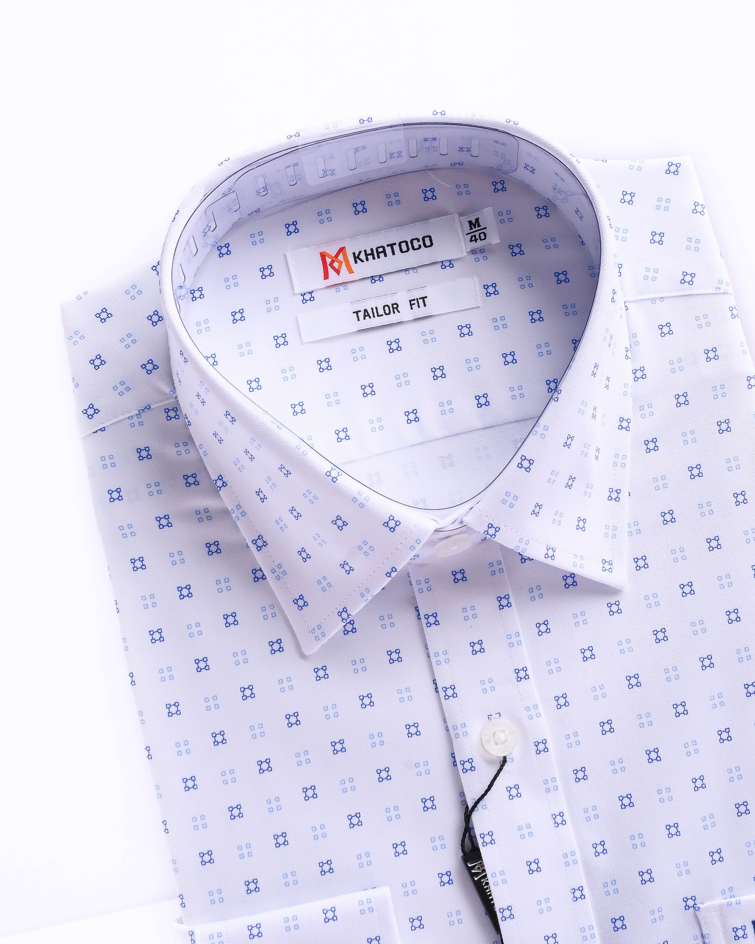 (V) MÔ TẢ: Form Taylor, tai dài Form áo tiêu chuẩn với form áo rộng vừa phải, không ôm sát cơ thể, bó nhẹ ở vùng eo và tay áo. Độ rộng vùng ngực và nách cũng sẽ fit hơn với cơ thể. Không quá rộng như form áo cổ điển. Màu vải nhã nhặn và trung tính dễ dàng phối trang phục tạo sự lịch lãm, nam tính Nút ton-sur-ton khắc logo đẹp mắt phối trọn vẹn màu áo. Logo thêu sắc nét trên túi áo. Chất liệu:50%POLYESTER- 24%COTTON-2%SPANDEX- 24%VISCOSE(BAMBOO) |Mềm mịn|Thấm hút |Kháng khuẩn|Độ thoáng khí cao|Chống tia UV|Chống nhăn|Chống co rút |Nhanh khô|Dễ vệ sinh làm sạch|Đứng phom áo Màu sắc : Màu Xanh họa tiết