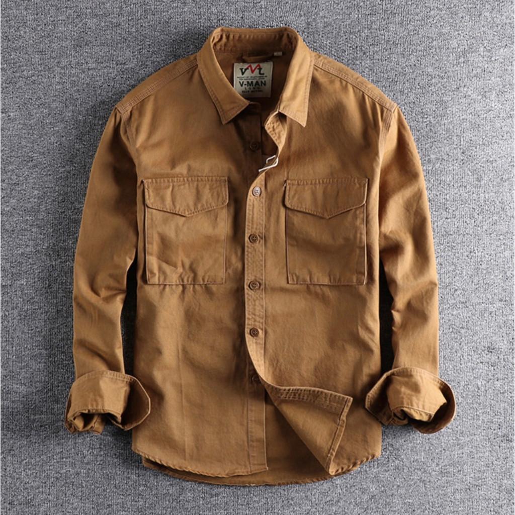 Áo sơ mi túi hộp phong cách Retro lính_dã ngoại Áo sơ mi Wild Casual Màu đang hot lắm ạ Chất kaki được wash acid cực bụi , phom chuẩn mặc rất đẹp ạ Size: