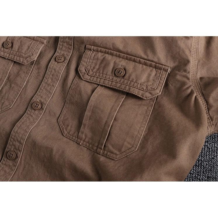 Áo sơ mi Retro túi hộp ngắn tay lính_dã ngoại Áo sơ mi quân đội Wild Casual Chất kaki được wash acid cực bụi , phom chuẩn mặc rất đẹp ạ Model thế hệ mới