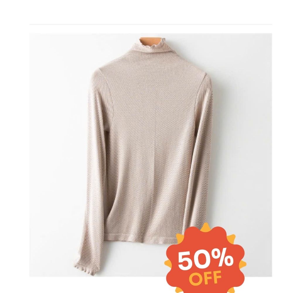 Áo giữ nhiệt nữ cổ lọ cao, sợi len mềm mại, đàn hồi tốt, ôm lấy thân hình, rất gợi cảm và nữ tính.