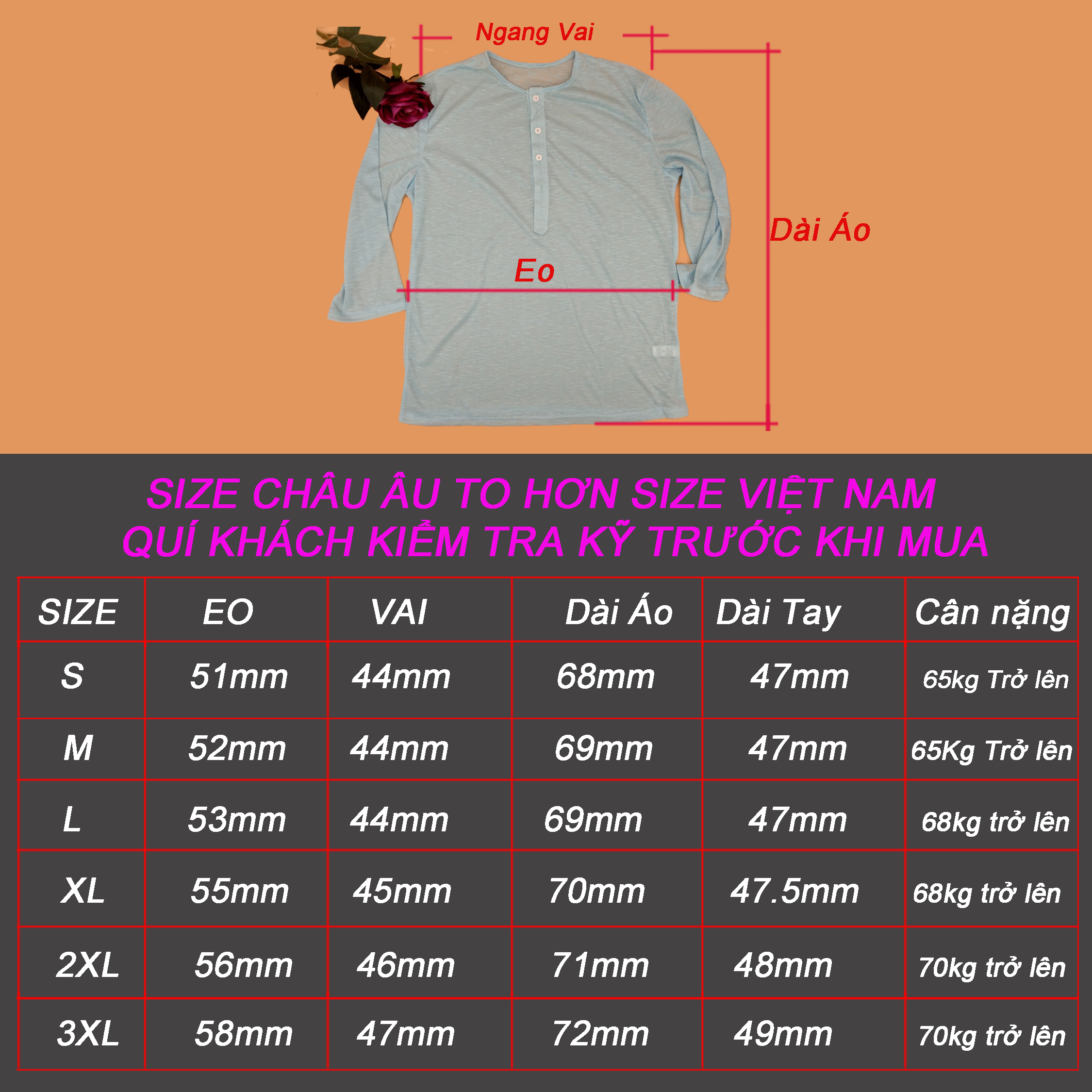 Áo thun dài tay Nam phong cách châu âu Áo thun chất thoáng mát, vải mỏng Phù hợp cho mùa hè, cập nhật xu hướng thời trang, mẫu mới nhất Thích hợp cho : Áo phù hợp với mùa nắng nóng Chất liệu: Thun Cotton co giãn Quí khách lưu ý : do size của châu âu khác size Việt Nam, quí khách xem kỹ bảng size và lấy thước đo eo của mình, để lấy áo phù hợp Chất vải thun co giản, mỏng và mát phù hợp cho mùa hè oi bức Chất vải thun co giản, mỏng và mát phù hợp cho mùa hè oi bức Chất vải thun co giản, mỏng và mát phù hợp cho mùa hè oi bức