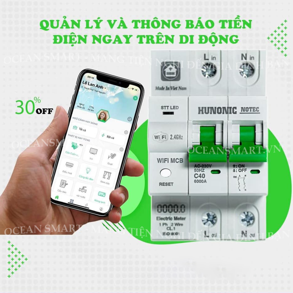 Aptomat Thông Minh Đo Năng Lượng Hunonic Notec | Aptomat Wifi Thông Minh | OCEANSMART.VN