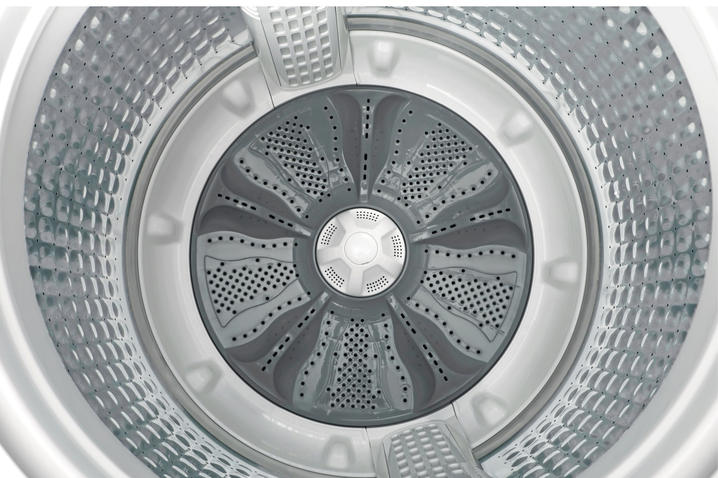 - Nắp máy làm từ kính chịu lực có khả năng giảm chấn mang lại sự bền bỉ, chắc chắn cho phần cửa máy giặt, hạn chế kẹt tay, an toàn cho gia đình có trẻ nhỏ. Hình ảnh chỉ mang tính chất minh họa - được hoàn thiện từ chất liệu thép không gỉ, có thiết kế đặc biệt với bề mặt hình gối và lỗ rất nhỏ chỉ 2.5 mm giúp cho việc giặt quần áo dễ dàng, bảo vệ quần áo tránh hiện tượng xơ vải mắc vào lỗ thoát nước. Hình ảnh chỉ mang tính chất minh họa Khối lượng giặt và chương trình giặt