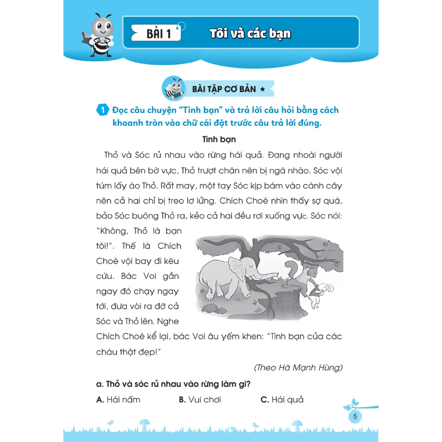 Các bài tập trong phần này được thiết kế sinh động, đầy cảm hứng với rất nhiều các hoạt động nối, tô màu, gạch chân, giúp khơi gợi hứng thú học và làm bài tập của các em, đồng thời giúp các em củng cố và nắm chắc các kiến thức đã học.