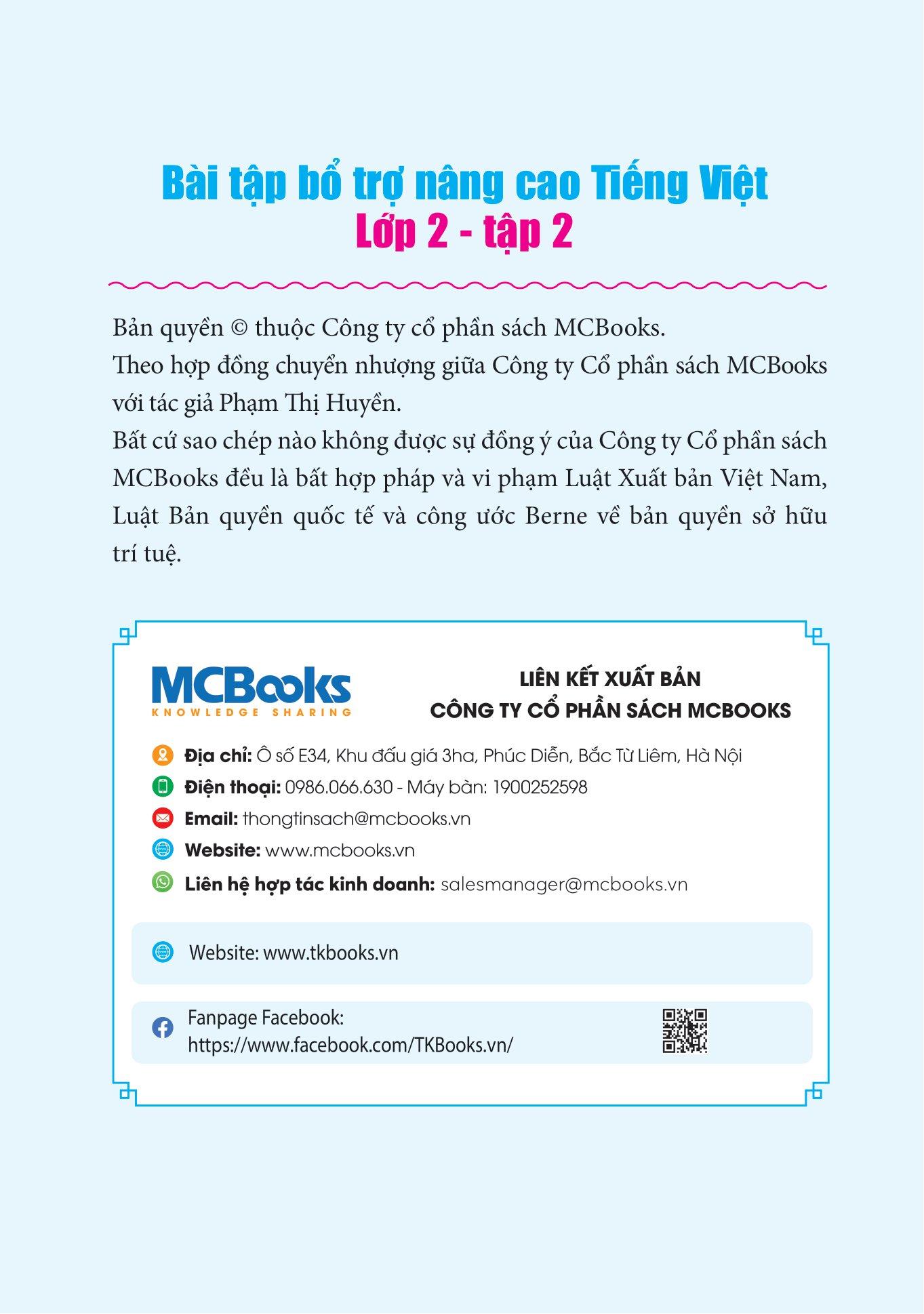 Bộ sách Bài Tập Bổ Trợ Nâng Cao Tiếng Việt Lớp 2 được biên soạn theo chương trình GDPT 2018, bám sát nội dung của bộ sách Kết nối tri thức với cuộc sống của Nhà Xuất bản Giáo dục.