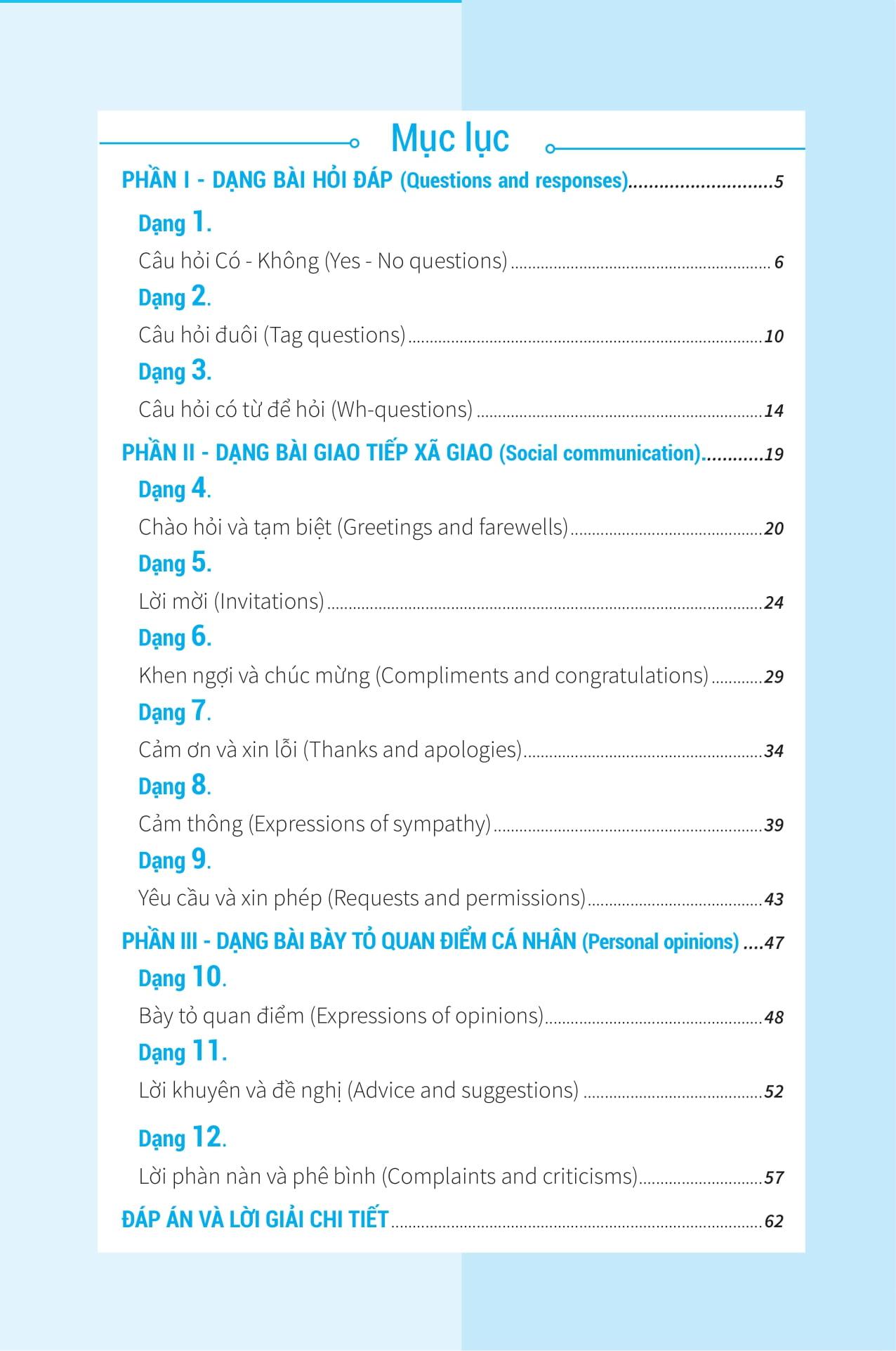 Cuốn sách bao gồm 3 dạng bài tập Giao tiếp Tiếng Anh trong kì thi vào 10 và 10 Chuyên môn Tiếng Anh