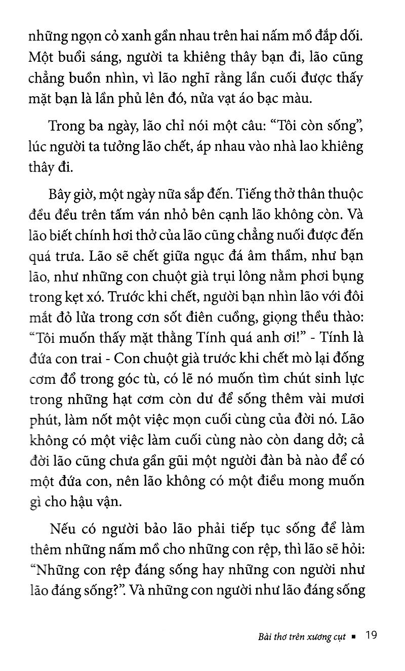Bài thơ trên xương cụt là truyện ngắn để đời của ông, bởi nó xuất hiện cách đây gần nửa thế kỷ nhưng chất văn học và tính hiện thực xã hội thì không hề mai một, cứ sáng lấp lánh như vì sao trên trời trong xanh, mỗi khi ta ngước lên và nhìn thấy.
