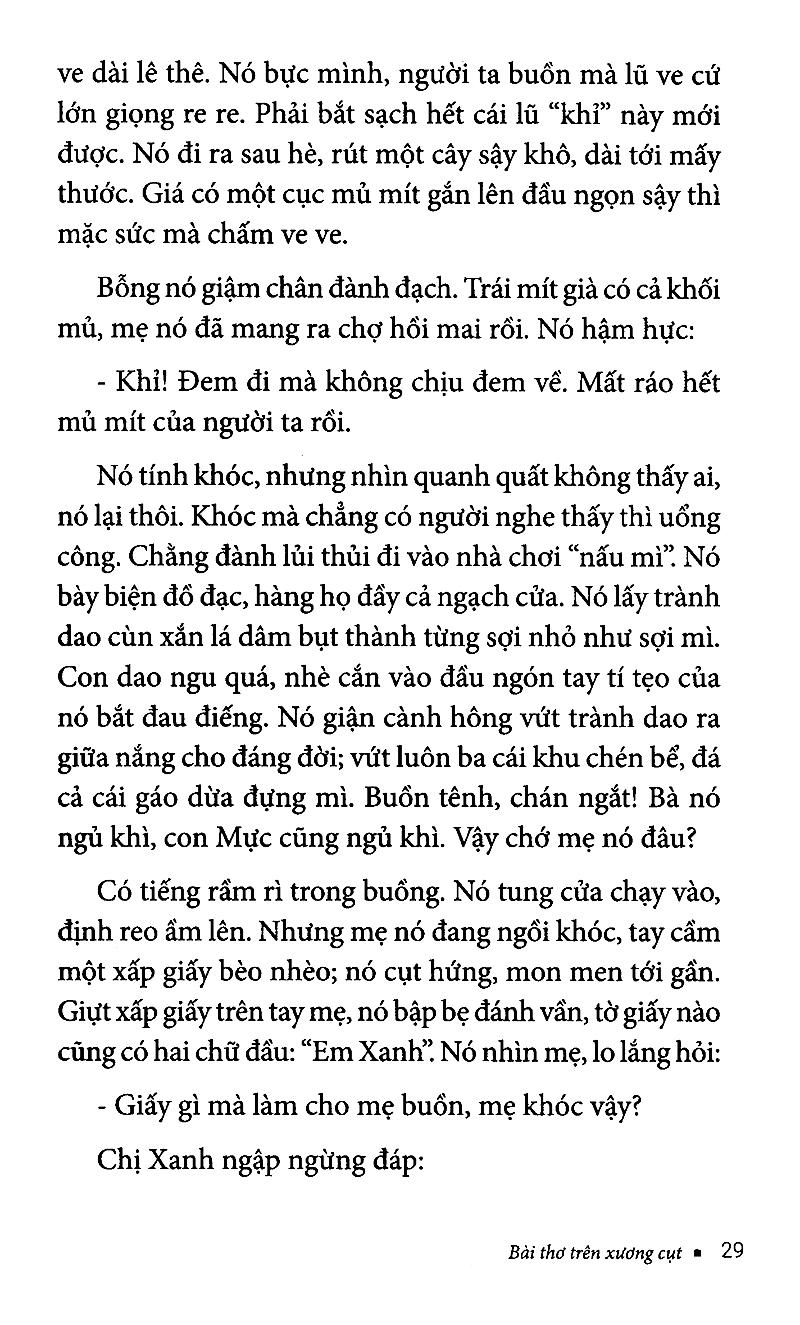 "TRƯƠNG THẤY TRONG NGƯỜI MỎI MỆT, nhưng có cái mỏi mệt nhẹ nhõm dễ chịu của một người vừa hết sốt. Ngoài đường cái có tiếng lăn lạch tạch của một chiếc xe bò đi