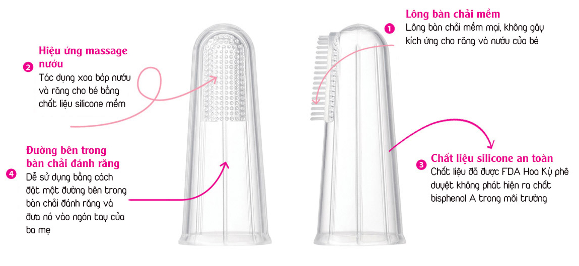 - Đường bên trong bàn chải đánh răng: Dễ sử dụng bằng cách đặt một đường bên trong bàn chải đánh răng và đưa nó vào ngón tay của ba mẹ