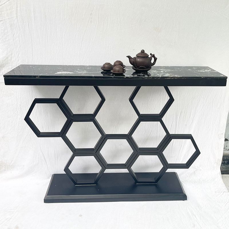 Bàn Console trang trí BEE khung sắt mặt đá CST029 mẫu bàn thiết kế hiện đại hình tổ ong được làm bằng sắt sơn tĩnh điện rất đẹp mắt, gia công tỷ mỉ kết hợp với mặt bàn đá sang trọng với nhiều vân đá lựa chọn. Bàn trang trí Bee rất phù hợp cho các không gian sảnh tiếp khách, không gian phòng khách hay lối đi, có thể kết hợp thêm các bức tranh Decor hay để các chậu bông, đèn trên mặt bàn trang trí rất sang trọng. THÔNG TIN CHI TIẾT SẢN PHẨM :