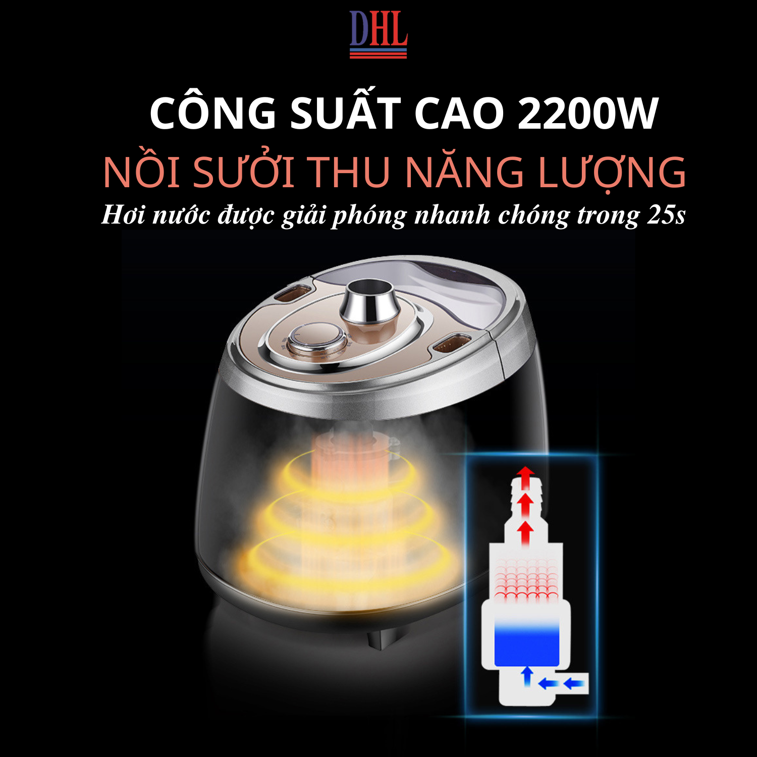 - Công suất mạnh mẽ lên đến 2200W, thời gian làm nóng nhanh chỉ 25s cùng chức năng phun hơi liên tục giúp tạo ra áp suất hơi nước mạnh hơn gấp 5 lần so với bình thường giúp bạn là phẳng mọi loại vải một cách nhanh chóng chỉ sau vài lượt ủi mà không làm ảnh hưởng đến bề mặt vải.