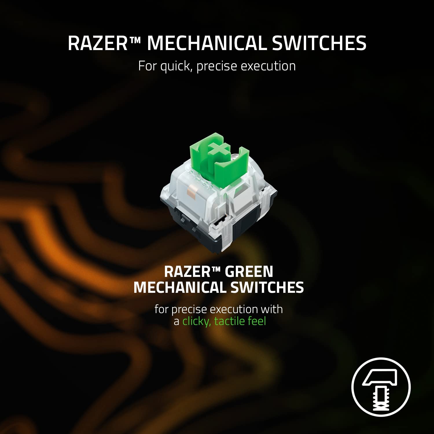 Các Switch cơ Razer (Clicky hoặc Linear) cho khả năng thực thi chính xác và nhanh   Ánh sáng trên mỗi phím và underglow 2 bên được trang bị hệ thống chiếu sáng Razer Chroma RGB