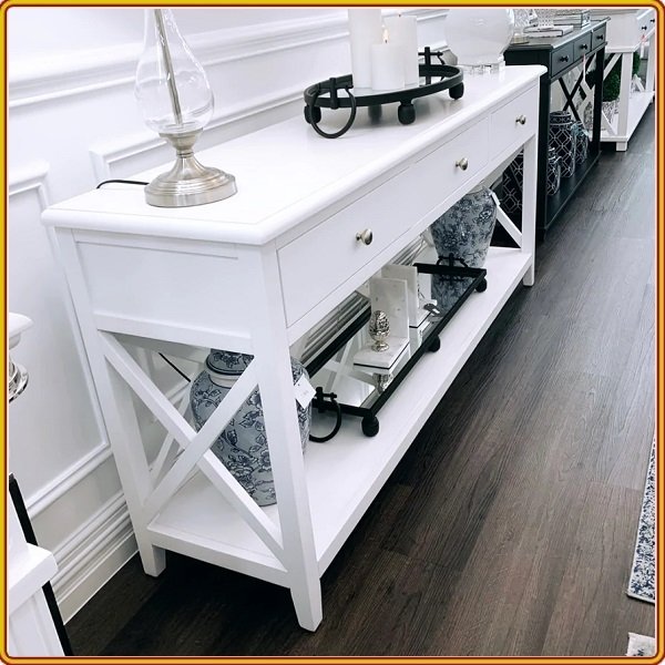 Bàn Console Gỗ Nguyên Tấm 2 Tầng Mặt Dày 5cm, Bàn Trang Trí Phòng Khách, Quầy Bar Đẹp Sang Dadota