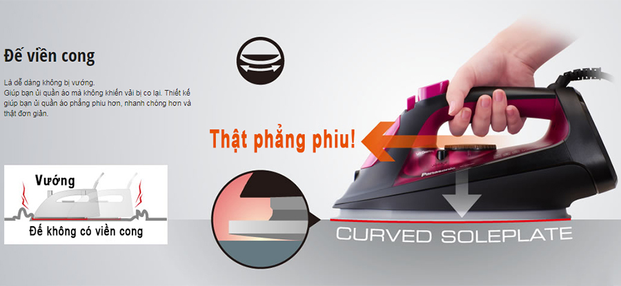 Ngoài ra, bản ủi Panasonic thích hợp với mọi loại vải, có vòng chỉnh nhiệt giúp lựa chọn được mức nhiệt độ phù hợp cho từng loại vải, đèn báo sẽ tự tắt khi đạt mức nhiệt cần thiết, bảo vệ quần áo không bị cháy xém do gặp phải nhiệt độ quá cao.