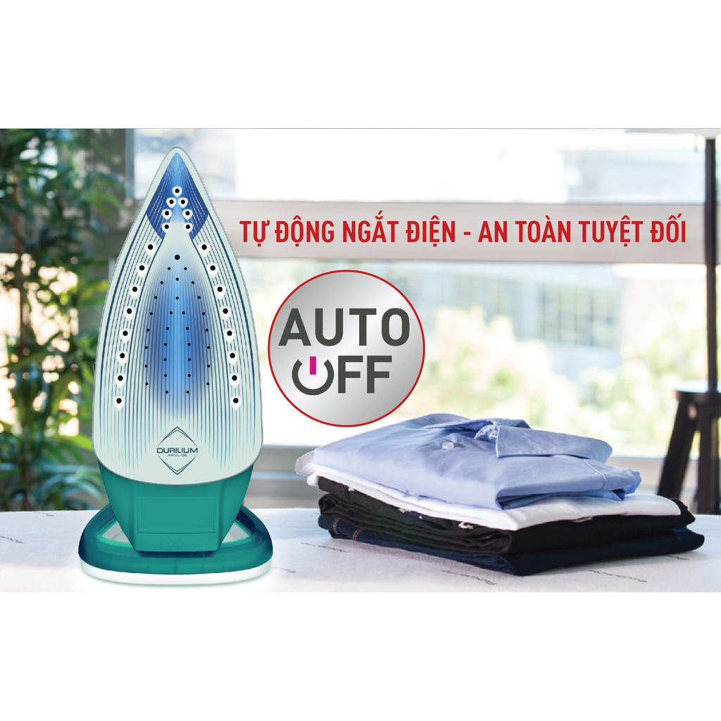 - Mặt đế chống dính Durilium AirGlide siêu bền, ủi được trên mọi loại vải 1 cách dễ.