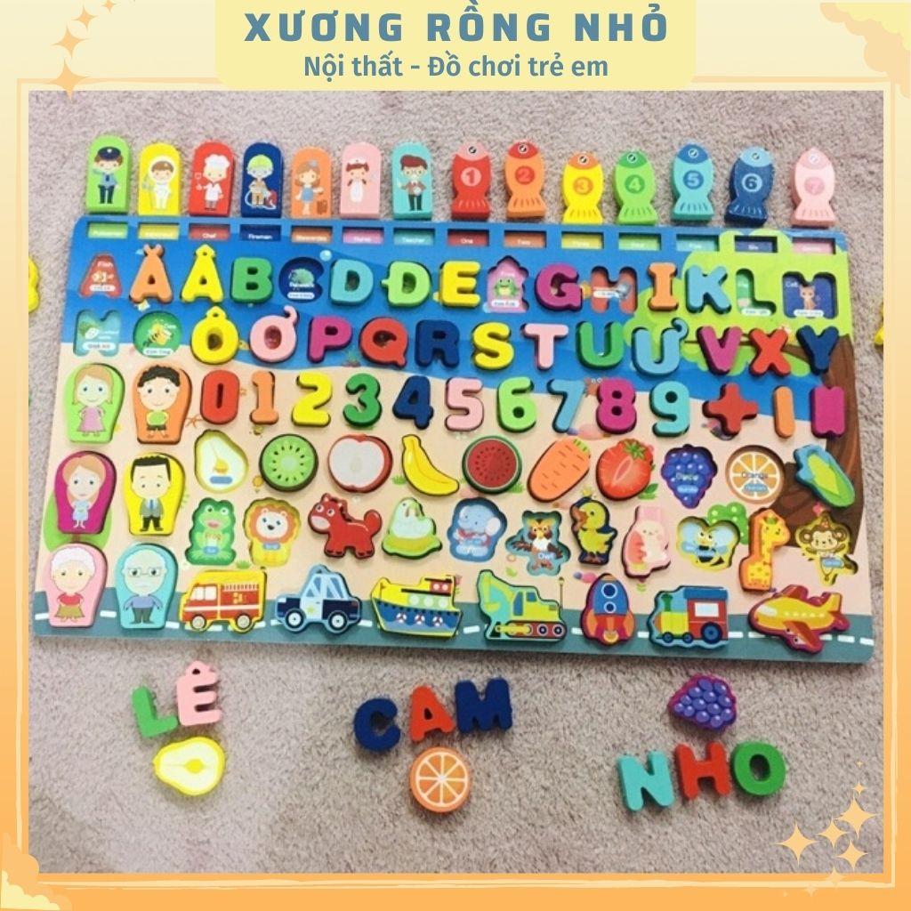 - Bộ bảng ghép hình gỗ câu cá làm 100% chất liệu gỗ an toàn cho bé Đồ chơi lắp ráp - Bảng gỗ đa năng 7in1 tiếng việt: