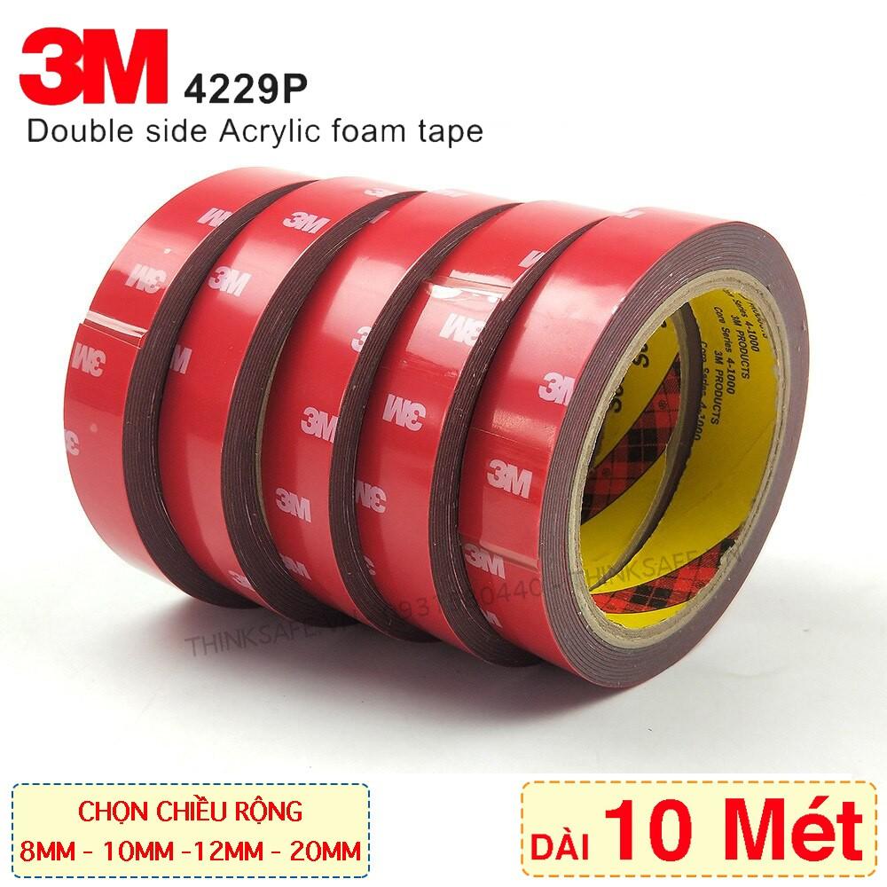 Băng keo cường lực siêu dính 3M 4229P có độ bám dính và đàn hồi tốt, chống chịu được rung động, khả năng kết dính cao mang lại hiệu quả bám dính trên nhiều bề mặt khác nhau. THÔNG TIN SẢN PHẨM Có 4 size cho các bạn chọn lựa: Lựa chọn: 8mm10m tức là bề rộng 08 milimet x chiều dài 10 mét Lựa chọn: 10mm10m tức là bề rộng 10 milimet x chiều dài 10 mét Lựa chọn: 12mm10m tức là bề rộng 12 milimet x chiều dài 10 mét Lựa chọn: 20mm10m tức là bề rộng 20 milimet x chiều dài 10 mét LỰA CHỌN BỀ RỘNG BĂNG KEO BẰNG VỚI BỀ MẶT TIẾP XÚC VẬT CẦN DÁN ĐỂ ĐẠT HIỆU QUẢ CAO NHẤT THÔNG SỐ KỸ THUẬT BĂNG KEO CƯỜNG LỰC 3M 4229P
